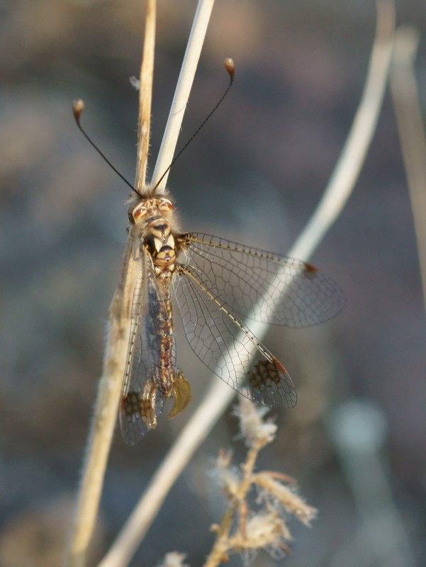 Nom de l'image : DSC03073R1h080r49.3 - Deleproctophylla australis (l'Ascalaphon de Corse) [Ascalaphidae - Névroptères] - adulte (F fécondée) sur graminée Nombre consultations : 350