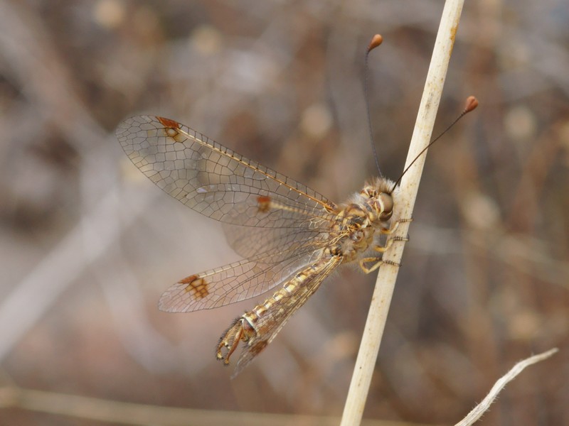 Nom de l'image : DSC03856R1b080r49.3 - Deleproctophylla australis (l'Ascalaphon de Corse) [Ascalaphidae - Névroptères] - adulte (M) sur graminée Nombre consultations : 275