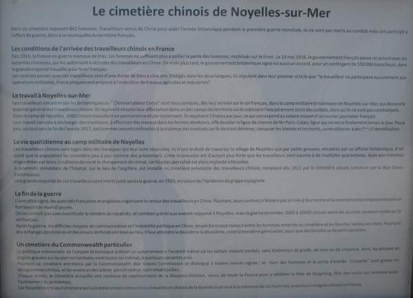 Nom de l'image : panneau cimetière chinois de Noyelles sur Mer Nombre consultations : 225