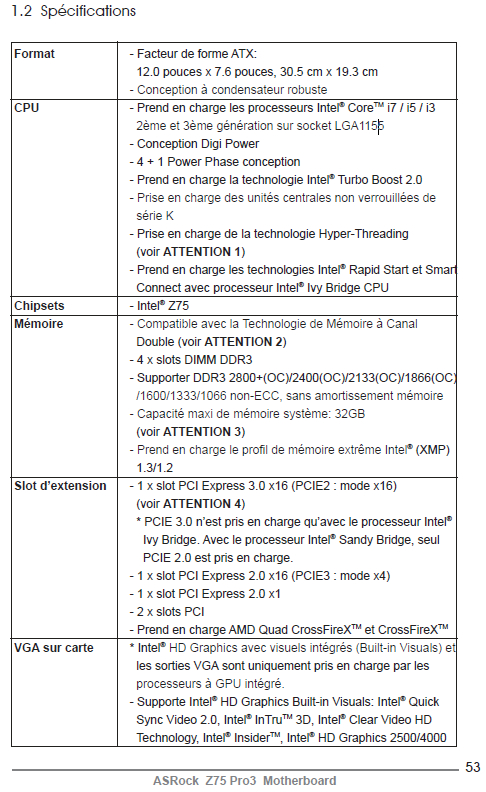 Nom de l'image : ASRock Z75 Pro3 spec 01 Nombre consultations : 119